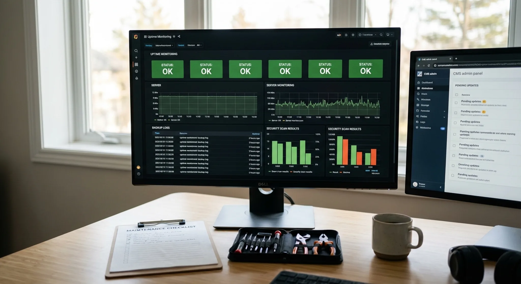Uptime monitoring automatically checks whether your website is accessible at regular intervals, typically every 1 to 5 minutes, and alerts you immediately when it goes down. This is essential because every minute of downtime means lost visitors, lost sales, and potential damage to your search rankings. Without monitoring, your site could be down for hours before anyone notices. TerrisDigital includes 24/7 uptime monitoring in all maintenance plans.